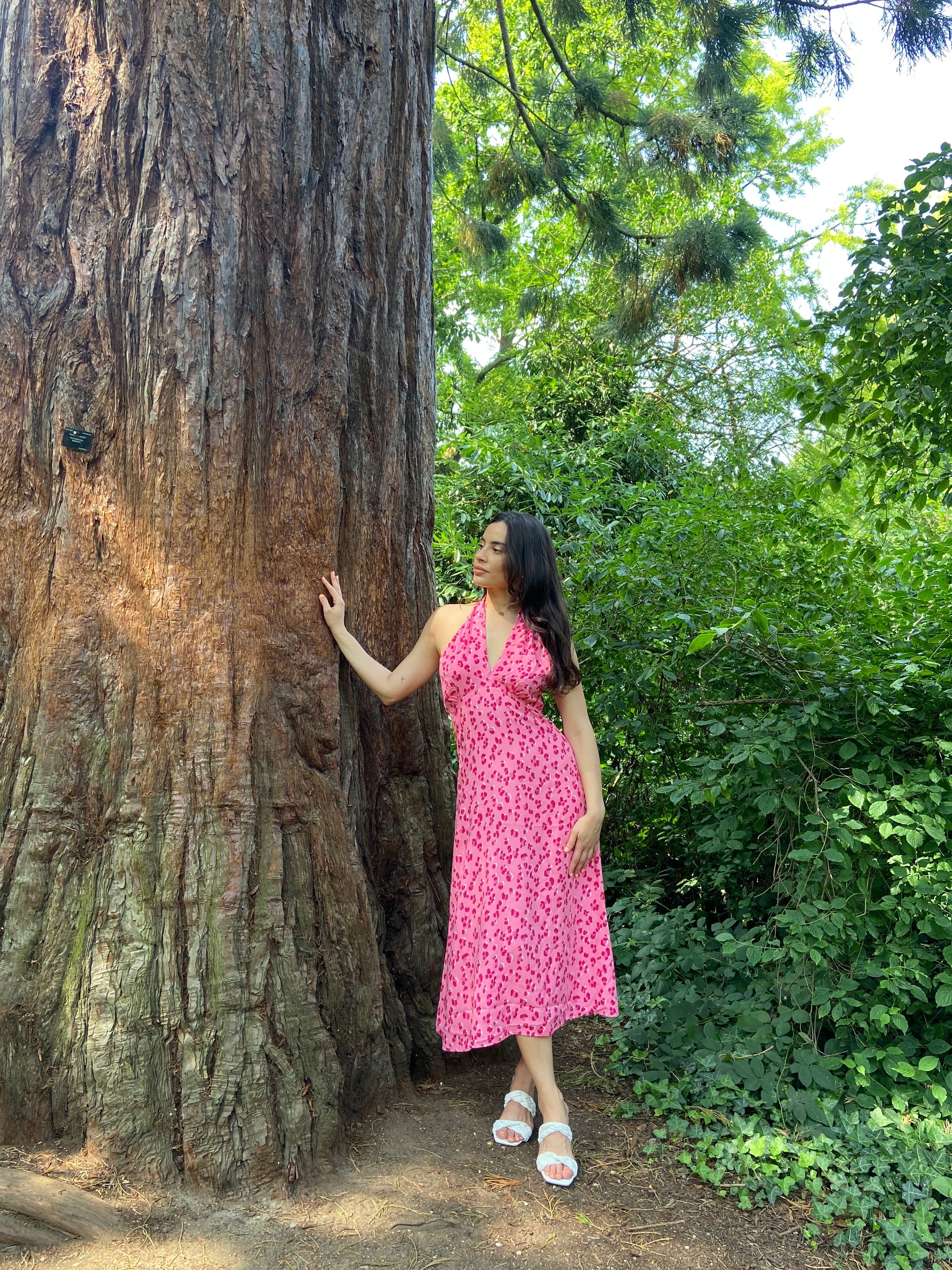 Discover the perfect balance of ease and elegance with this stunning midi halter neck dress. Crafted from 100% viscose, it offers a soft, lightweight feel with a fluid drape, making it an ideal choice for any occasion, from casual gatherings to more refined events.