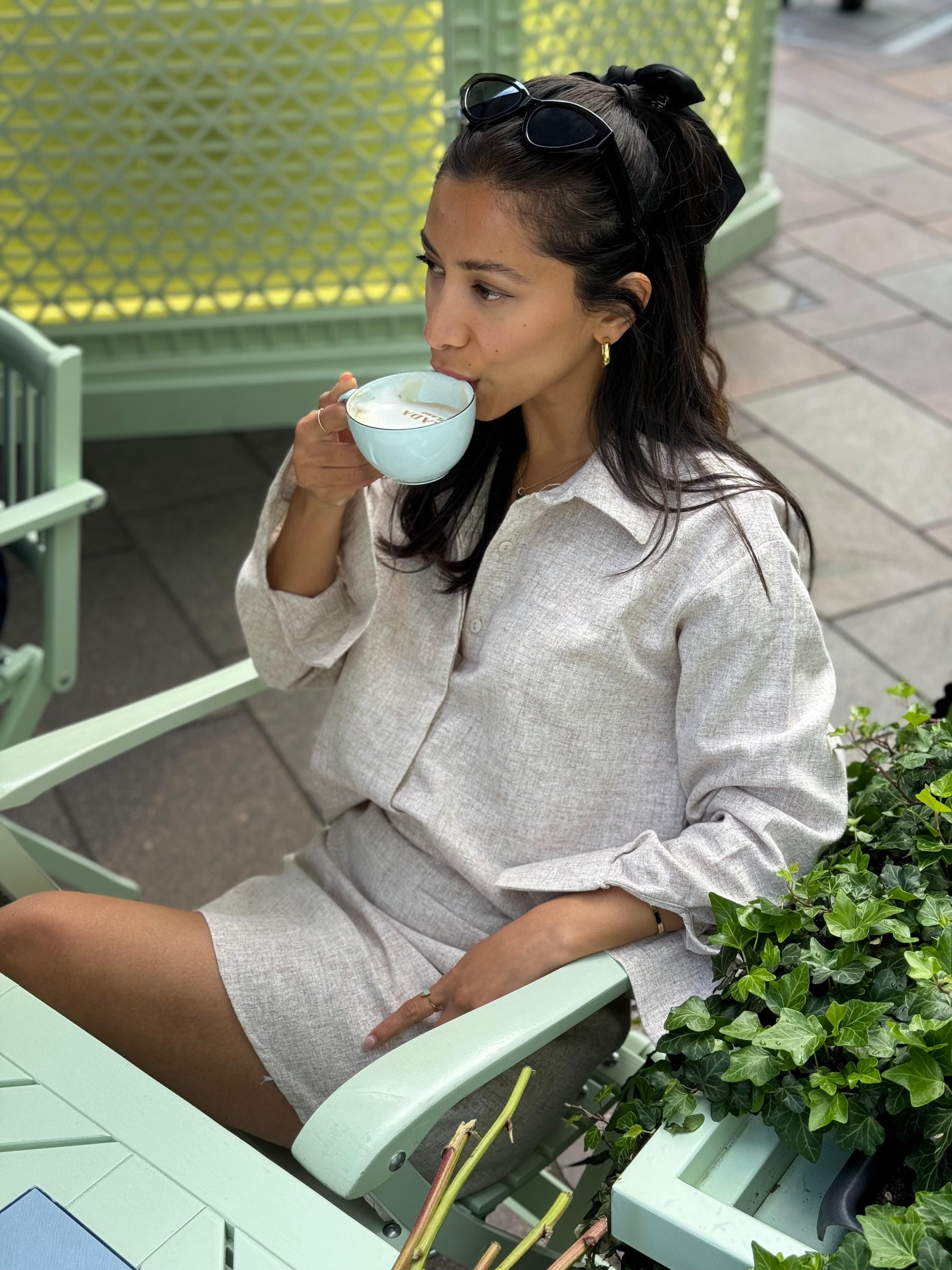 Stay comfortable and stylish this summer with our Beige Summer Set. Made with 100% linen, this set includes a skirt with a convenient zip at the back and a matching T-shirt. The beige-brownish pale color adds a touch of elegance to your look. Perfect for any summer occasion, this set is a must-have addition to your wardrobe.